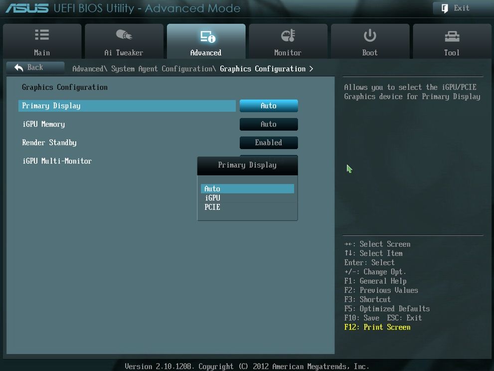 O seçenek ikisinden birini seçmek için. iGPU seçerseniz harici kart devre dışı kalacak.