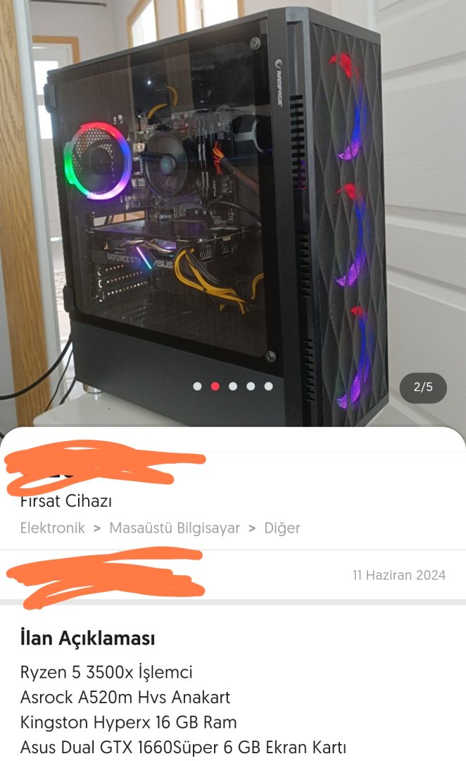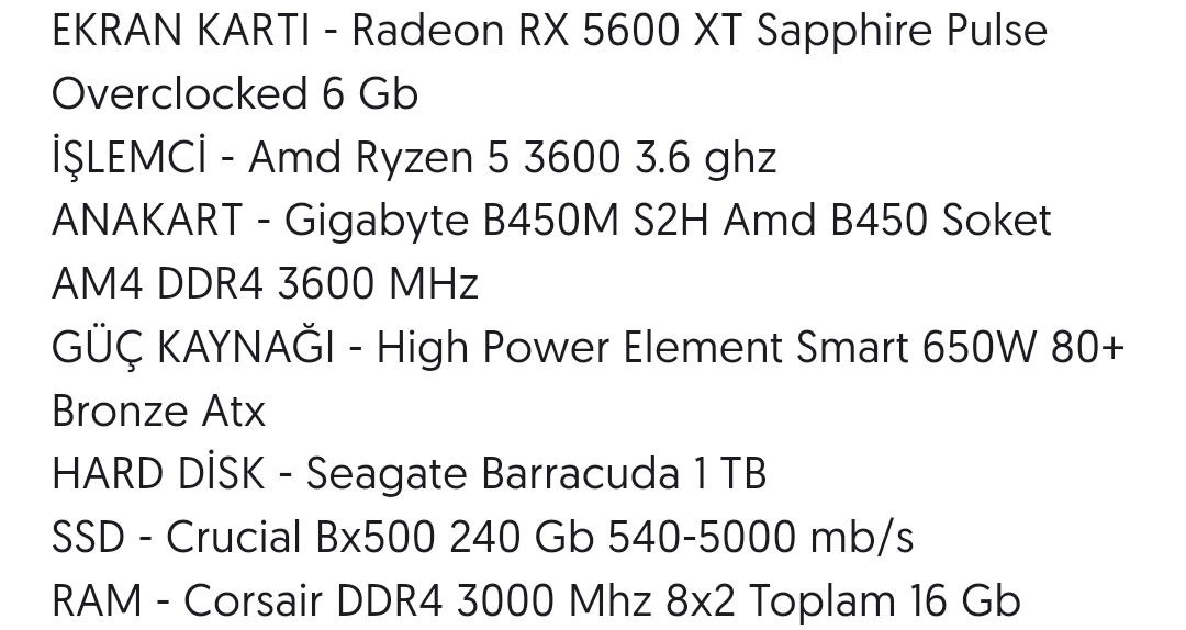 RX 580'li olan 10000 TL. RX 5600 XTli 10000 TL. GTX 1660 Super'li 11000 ama pazarlikla 10000'i var onunda niye sansurledim bilmiyorum sadece ekran karti ve işlemci odaklı cevaplar istiyorum.