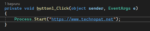 Bu kod, butona tıklandığı an otomatik olarak Technopat'in ana sayfasını açar varsayılan tarayıcı üzerinden.