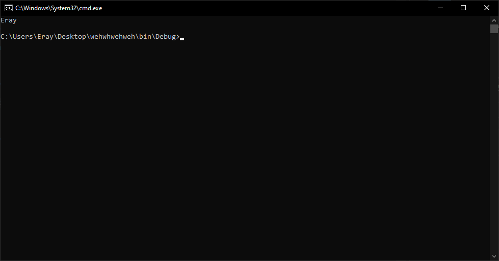 Bu kod, CMD'yi açar ve CMD'ye Eray yazar. /k parametresi komutu işlemesini söyler.