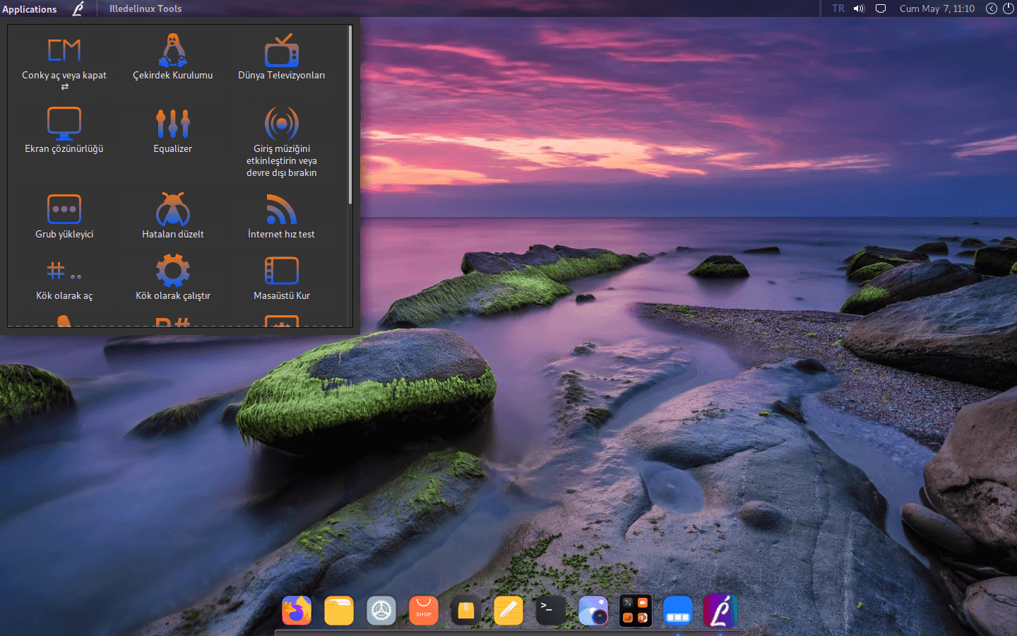 - Bu araçlar şunlardır: Conky'i aç veya kapat, çekirdek kurulumu (kernel), dünya televizyonları, ekran çözünürlüğü, equalizer, giriş müziğini aç veya kapat, grub yükleyici, hataları düzelt, internet hız testi, kök olarak aç, kök olarak çalıştır, masaüstü kur, otomatik oturum aç, programların RAM kullanımı, servisler, sistem canlı bilgiler, sistemi iki farklı depodan güncelleyin, uçbirime neofetch ekle veya kaldır, üçüncü taraf yazılımlar kur.