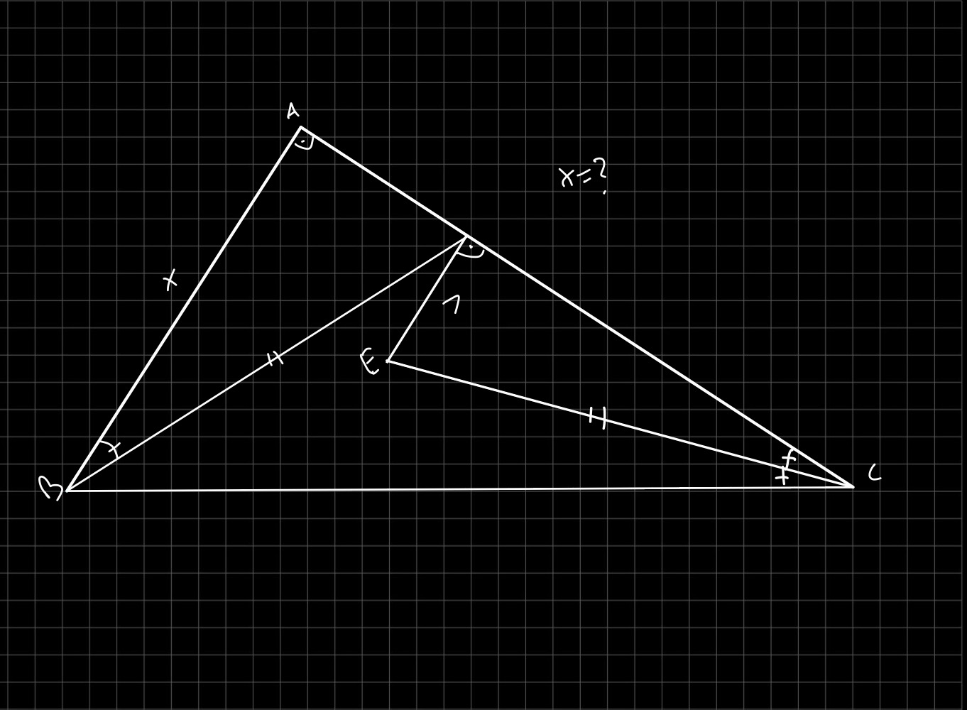 Üçgenler eş üçgen çıkıyor eş açı ve kenar sayesinde. Bundan sonra Tan2x formülünü uygulayacağız. Küçük üçgenden Tanx bulup büyük üçgende Tan2x'in değerine eşitleyeceğiz çıkıyor. Okunursa yazılı olarak da paylaşıyorum.
