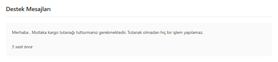 Ardından tabii ki destek talebi oluşturdum ve dönüş sağlandı, yapılan dönüş şu şekilde: