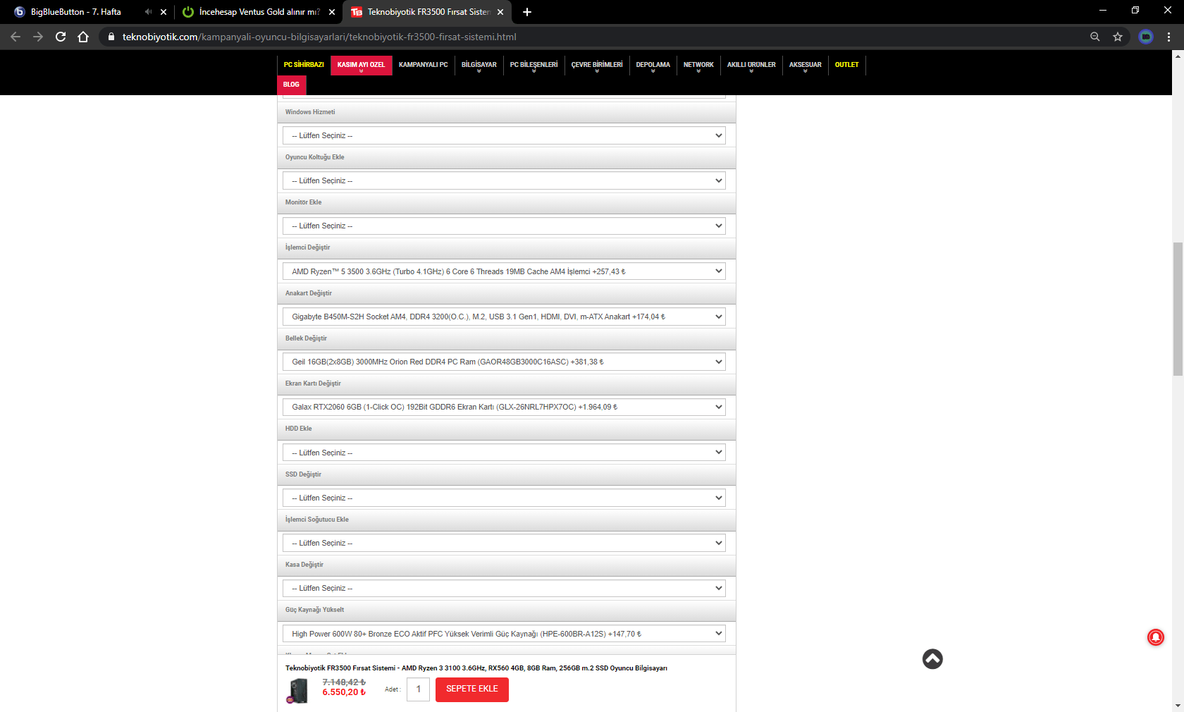 Şu değişikliklerle 6550 TL'ye RTX 2060 sahibi oluyorsun. Tabi bütçeyi aşıyor biraz.