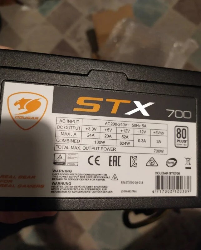 Satılan ürün: Cougar CGR-STX-700 700W 80+ 14cm Fan Power Supply - incehesap.com