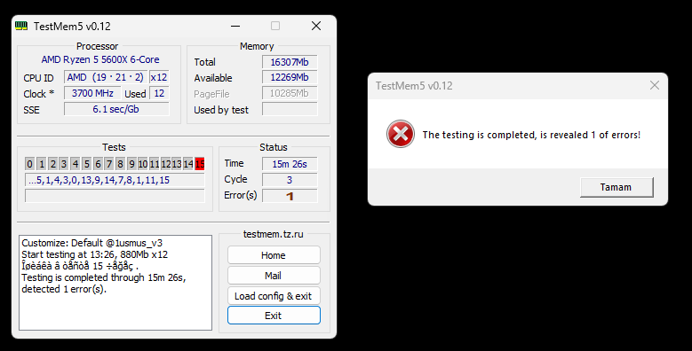 -Memtest64 ile test yaptım 100 kez tekrarladı (loop'a almıştım).