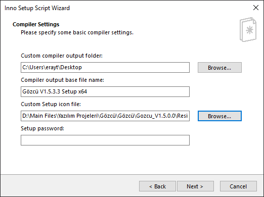 Ve mutlu son program başarıyla derlendi ve setup haline dönüştürüldü.