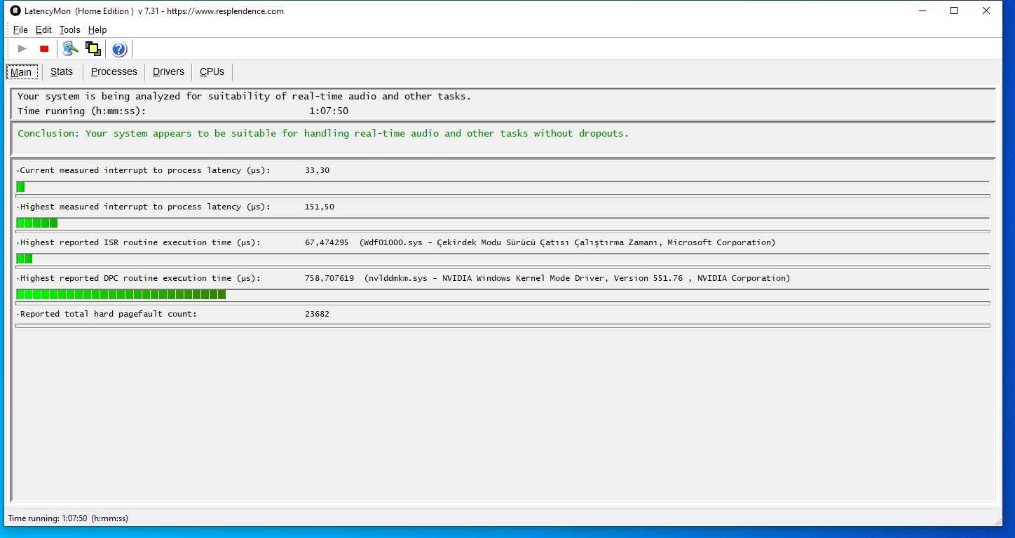 Gecikme değerleri pek absürt durmuyor ama düşük de değil kesinlikle. Daha lite Custom Windows sürümleri ile kayda değer düşürebilirsiniz gecikmeyi.