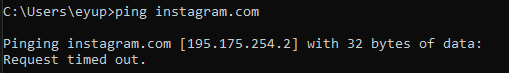 CMD üzerinden "instagram.com" adresine ping atınca 195.175.254.2 adresine ping atıyorum.
