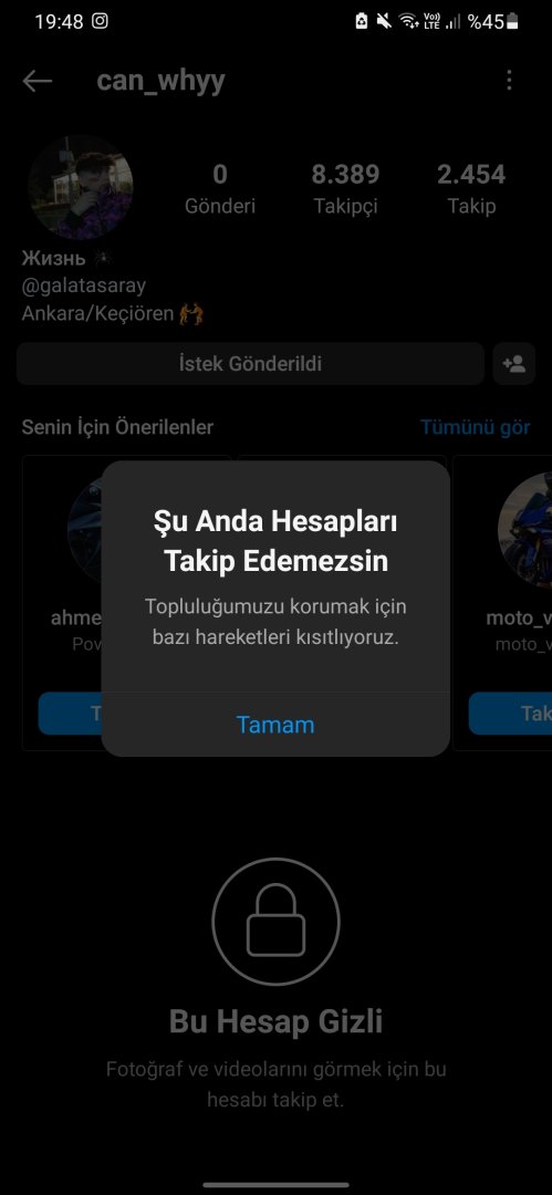 Birilerini takip etmek istediğimde 1 haftadır şu anda hesapları takip edemezsin diye uyarı veriyor.