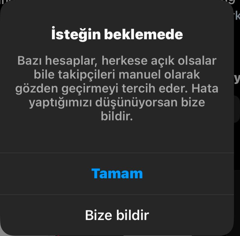 Instagram platformu üzerinden güzel içerikler üreten herhangi bir herkese açık hesabı takip etmeye çalıştığımda ekteki hatayı almaktayım. Bu sorun sadece herkese açık hesaplarda olduğu için sizlere bir danışmak istedim. Tüm hesaplarda bu sorun mu mevcut diye arkadaşımın gizli hesabına takip isteği atmayı denediğimde istek atabiliyorum.