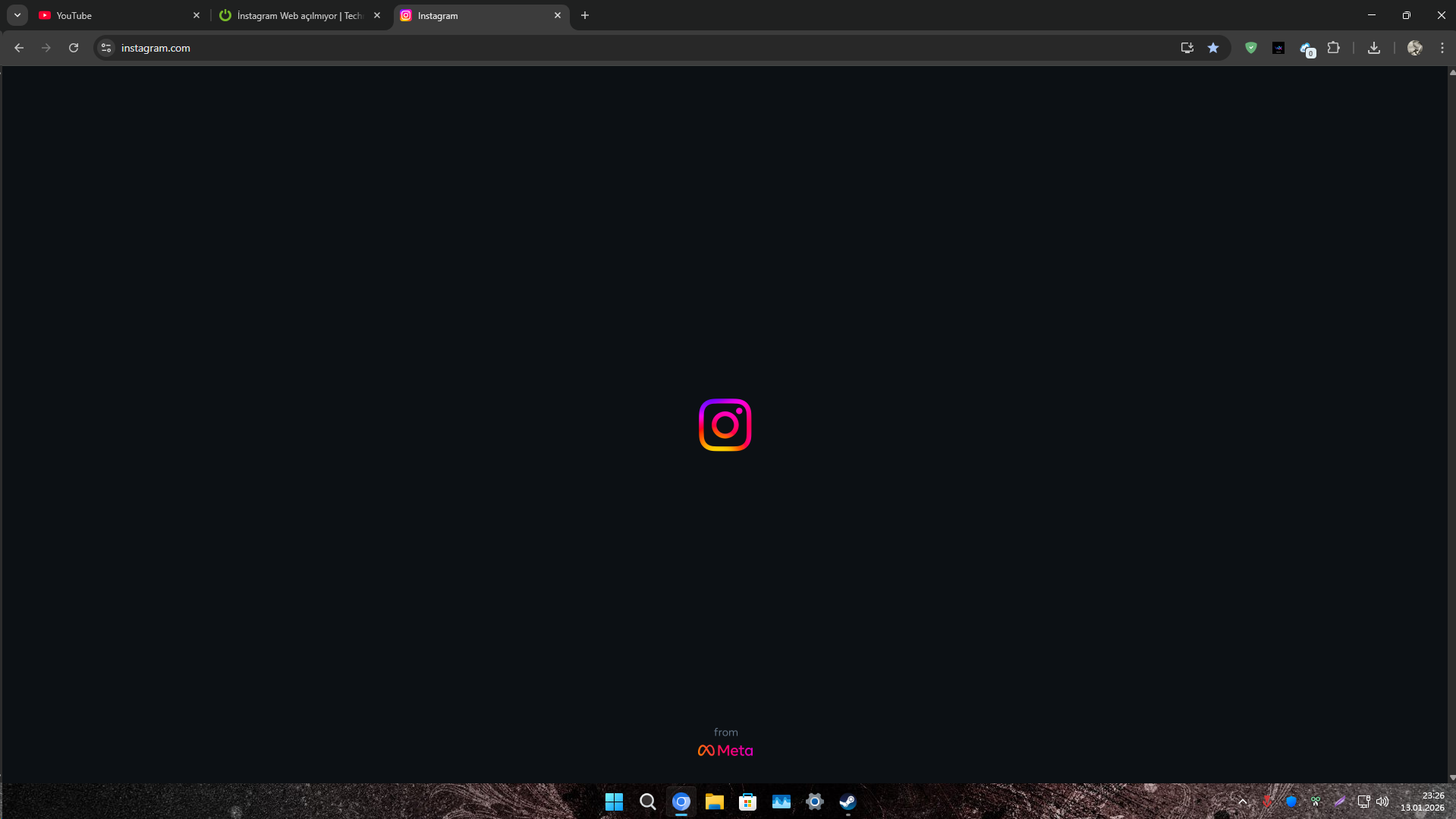 Daha dün sıkıntı yoktu, ama akşam üzeri böyle bir şey oldu sanırsam. Instagram yükleniyor, ancak bu ekranda kalıyor. Telefondan açabiliyorum ve rahatça kullanabiliyorum, ancak web'e geçtiğimde böyle oluyor. VPN'le girseydim ve ondan bir sıkıntı olsa telefona bildirim gelir ama yok, VPN'siz de girdim ve durum aynı. Bazıları modemi aç kapa yap diyor. Ne yapmalıyım veya bunun sebebi ne?
