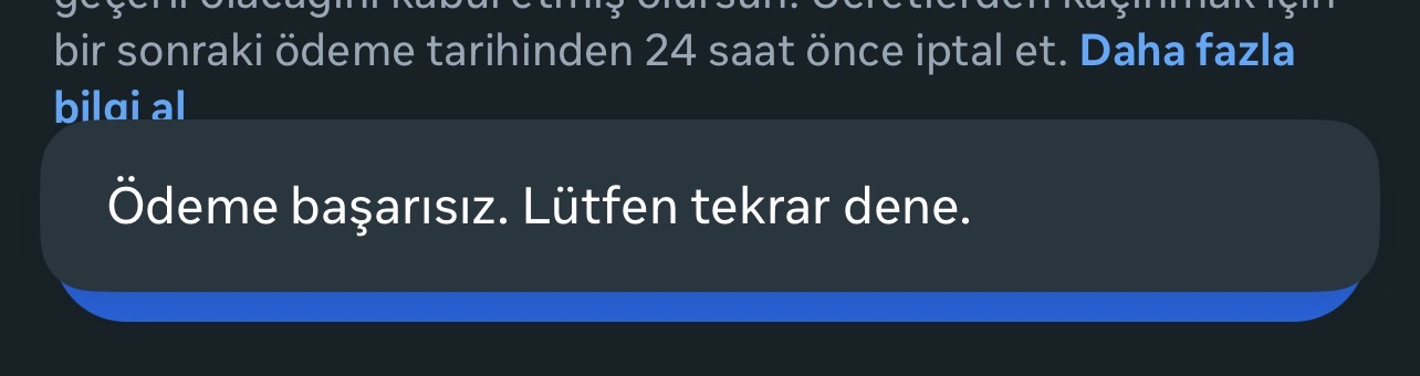 Ne meta Verified'a abone olabiliyorum ne de bir Instagram hesabına abone olamıyorum, ödeme sürekli başarısız oluyor sebebi ne olabilir?