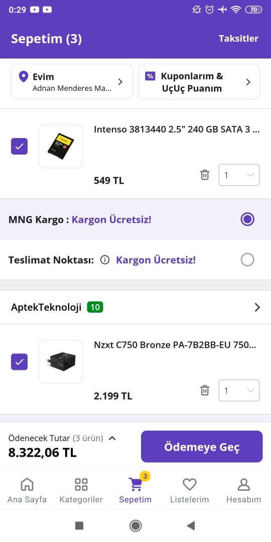 Birde psu + ssd için diğer sitelerdende öneri alabilirim ( Amazon, Hepsiburada, Trendyol, pazarama vb ) işlemci olarak i5 9400f e yükselteceğim.