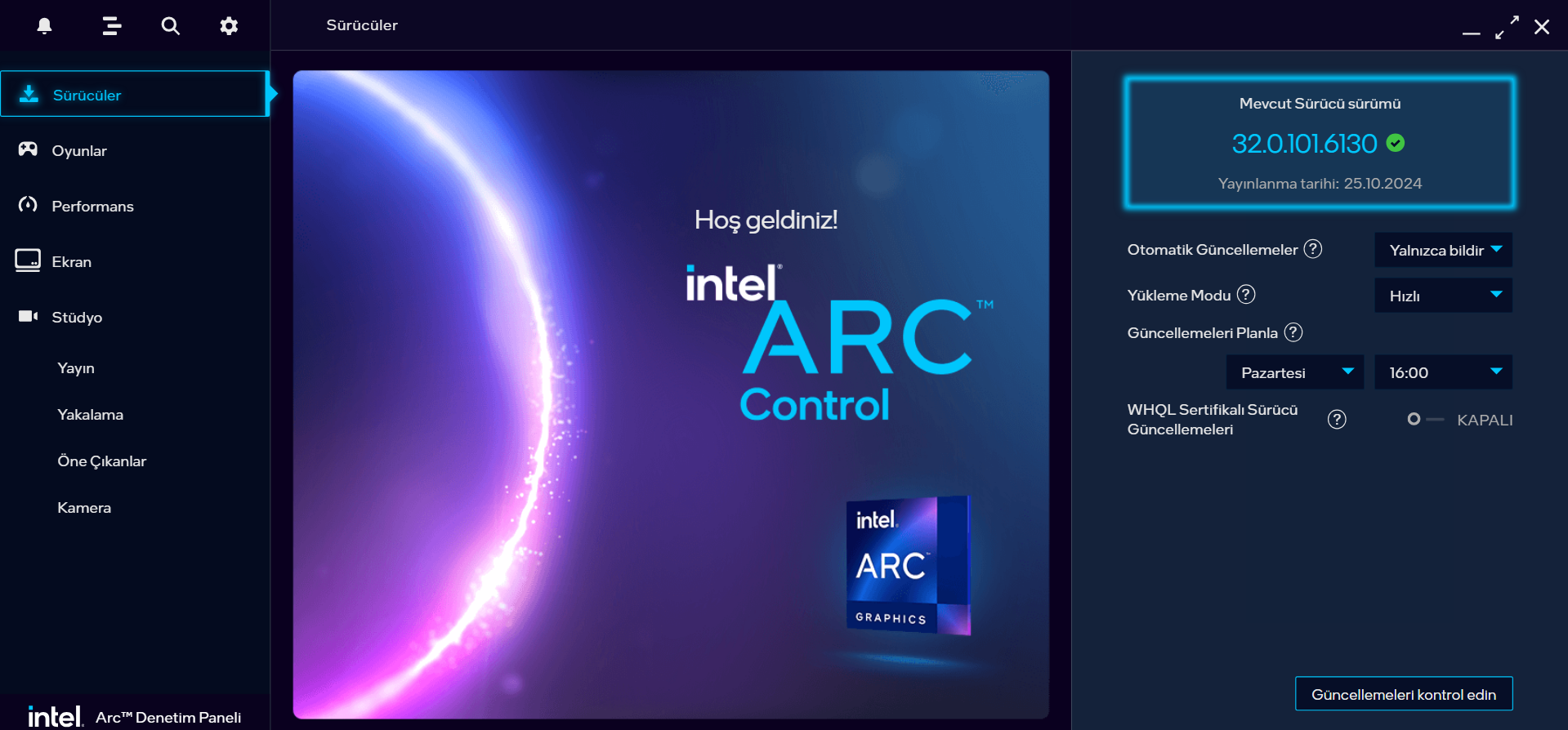 Intel Arc Control WHQL sertifikalı sürücü güncellemeleri yapılmalı mı?