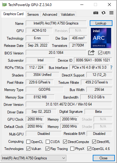 Intel Arc A750 GB 256bit.