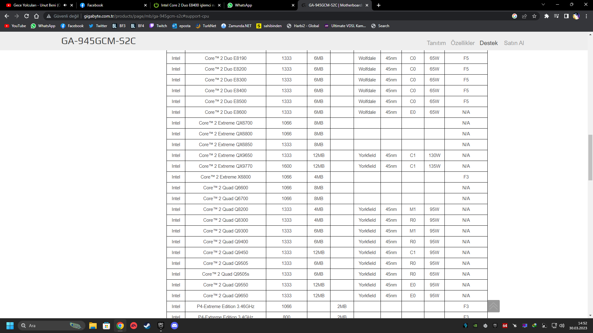 Benim bilgisayarım bu resimdeki gördüğünüz işlemciyi destekliyor en fazla. Yani bu en yüksek desteklediği işlemci. Bilgisayarımın anakartı DDR2.