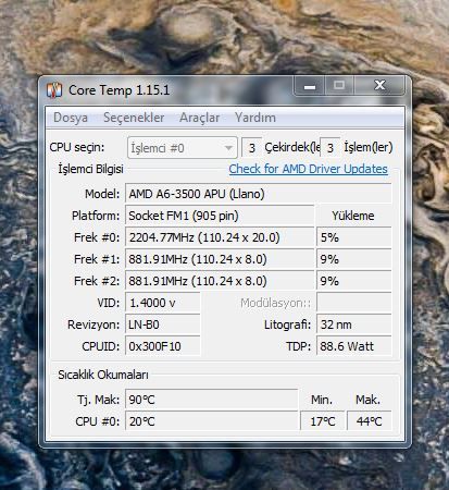 Sizin sıcaklık sensörleriniz bozulmuş. Çünkü şöyle bir şey var. İşlemci sıcaklığınız soğutucunun yapraklarından geçen havanın sıcaklığından düşük olamaz. İster sıvı ister hava soğutma olsun durum böyledir. Anca sıvı nitrojen gibi çok soğuk bir madde kullanırsanız durum böyle olabilir.