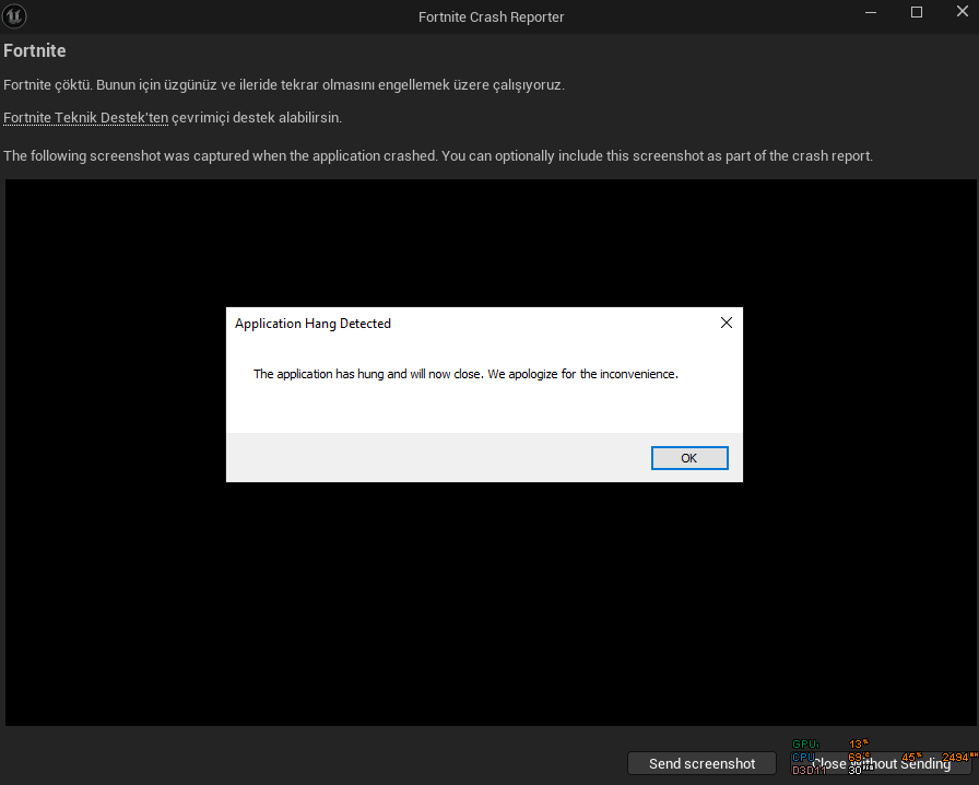 Merhaba, geçtigimiz günlerde Fortnite indirdim. Normalde NVIDIA 920M ekran kartım var ama onunla girince 5 FPS üstüne çıkmıyor (Bu sorunu haftalarca Epic Games destek ile görüştüm çözemediler.) Onu devre dışı bırakıp Intel ile girince 30 FPS'ler almaya başladım. Fakat oyuna girdiğimde 10 saniye sonra oyundan atıyor. Tüm her şey en düşükte hatta çözünürlüğü 800 600 bile yaptım ama olmadı.