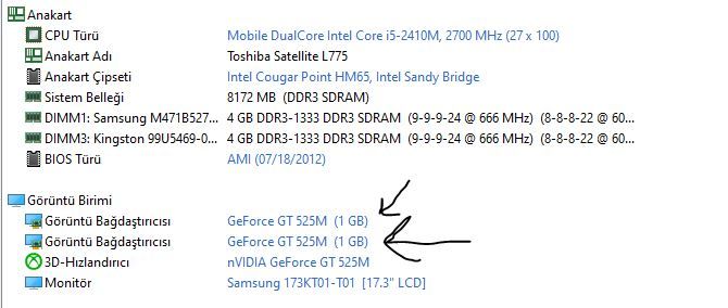 Bilgisayarım Toshiba l855-16q model i5-3230m işlemcili, AMD HD7670M grafik kartı var. Benim sorunum işlemcinin kendi ekran kartı İntel Graphics HD 4000'nin gözükmemesi. Format attım olmadı. Bilgisayarı ilk aldığım zamanlar vardı muhtemelen Windows 8.1 Windows 10 olunca karıştı gitti. İndirmediğim driver neredeyse kalmadı. Onlarda kurulmuyor bu yazılım sistem gereksinimlerini karşılamıyor hatası veriyor. Aida64 programını indirdim etkin değil gözüküyor. Nasıl etkinleştirebilirim? Başka konularda örnekleme yapılmış Asus anakart BIOS'tan yapılma diye bunun BIOS en günceli ama ekran kartıyla ilgili seçenekler yok.