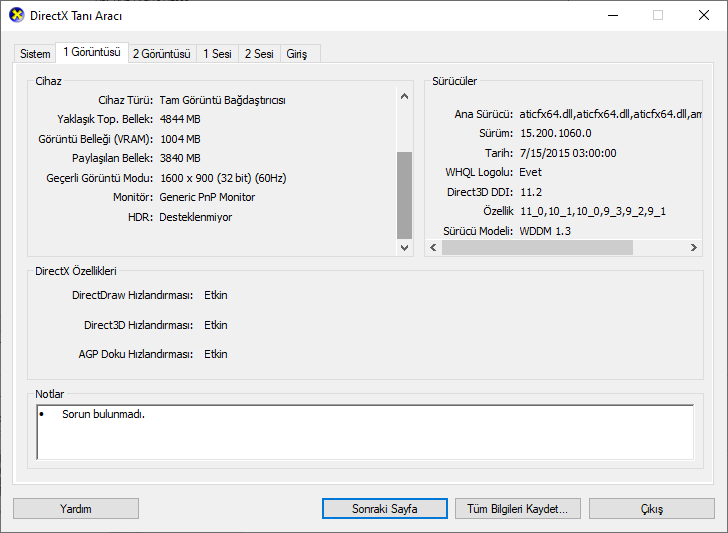 Ama DxDiag ekranında M.2000 ekran kartım 1 GB olduğu halde 5 GB gözüküyor ama oyunlarda Max 1 GB kullanıyor.