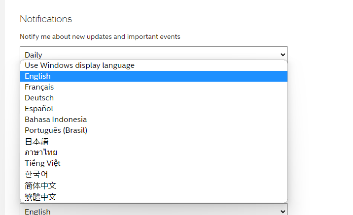 Benim bilgisayarımda normalde İngilizce fakat özellikle gidip "Use Windows display language" seçimi yerine İngilizceyi seçmeniz gerekiyor.