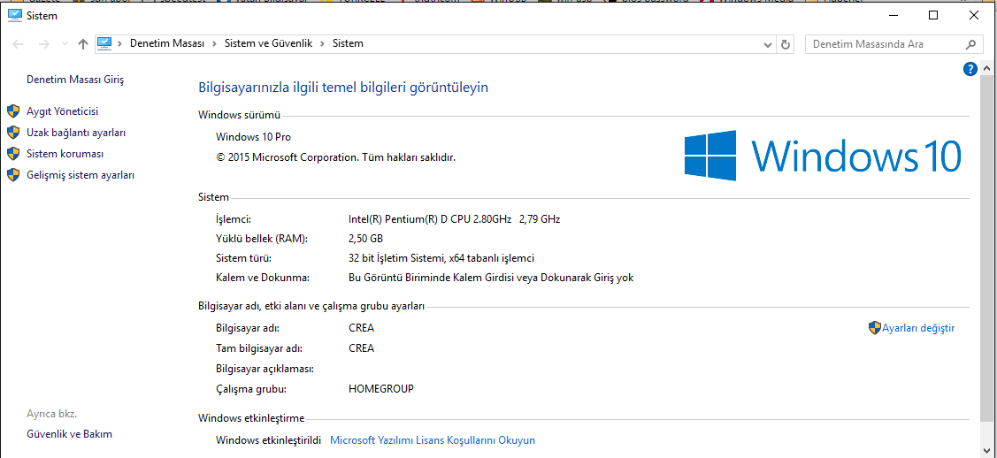 Aşağıdaki ekran görüntüsünde örnek olarak gösterdiğim işlemci kontrol ettiğimizde Windows 10'a uyumlu değil.