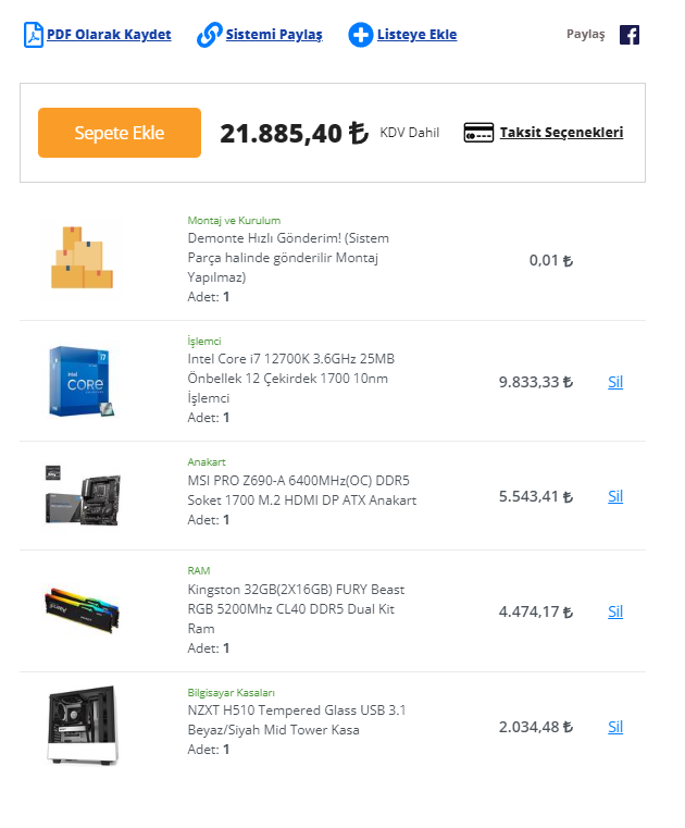 Hazır sistem almayı düşündüm ama montajını kendim de yapabilirim o yüzden fazla para ödemeye gerek yok diye düşündüm. Kullanım amacı 50 tane Browser'da 10'ar tane sekme açılacak. Ona göre de RAM'leri toplarız. 16+16 düşünüyorum. Daha sonra ek slotlara ekleme yapabilirim. Wi-Fi'li anakarta gerek yok. @Mevlüt Çetinkaya ilk sistemi sizinle toplamıştık. Buna da göz atarsanız sevinirim.