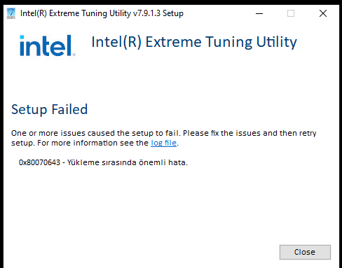 Intel XTU yüklemesinde '0x80070643 Setup Failed' hatası