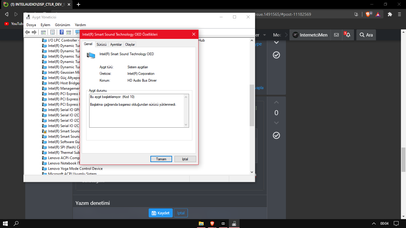 Çözüldü INTELAUDIO\DSP_CTLR_DEV_9DC8&VEN_8086&DEV_0222&SUBSYS_381417AA sürücüsü