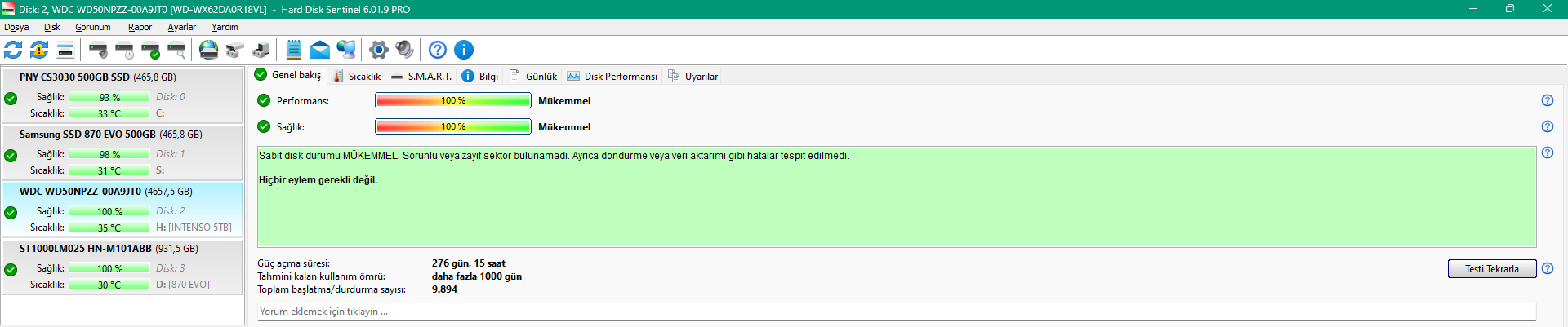 Biraz da sorunlardan bahsedeyim. Ürün FAT32 formatlı olarak geliyor. Ben Minitool programı kullanarak exFAT olarak formatladım. Windows diski RAW formatlı olarak gördü. Sonra yine Minitool ile NTFS olarak formatladım, herhangi bir problem olmadı. Tüm testleri de disk NTFS formatlı iken yaptım. İnternette ürünleri alan kişilerin yorumlarını okuduğumda bazı insanların NTFS ile sorun yaşadığını exFAT ile hiçbir problemlerinin olmadığını gördüm. Ben de ise tam tersi oldu. Burada sorunların kutusundan (box) kaynaklı olduğunu düşünüyorum. Ciğeri (WDC WD50NPZZ-00A9JT0) sağlam ama SATA to USB adaptörü veya kuvvetle muhtemel adaptördeki kontrolcü kaliteli olmayabilir. Ben NTFS formatladıktan sonra hiçbir problem ile karşılaşmadım.