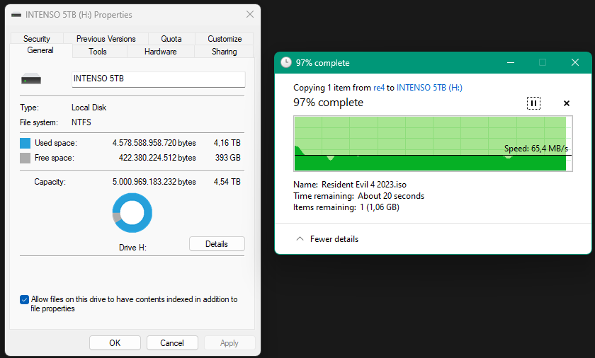 Elimde Intenso'nun 1 TB'lık HDD'si bulunuyor. Fiziksel olarak karşılaştırdım. Yapı olarak aynılar. 5 TB'lık model daha kalın. Fakat 5 TB'lık modelin kutusundan çıkan kablo ile 1 TB'lık modelin kablosu farklı ve 5 TB'lık modelin kablosu kötü. Dandik bile diyebilirim. 1 TB'lık modelin kablosu standartların üstünde bir kaliteye sahipken bu modelin kablosunun bu kadar kötü olması üzücü.