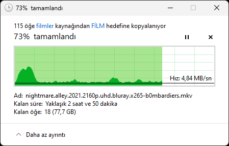 Bu arada ben de az önce 50 GB'lık iso kopyaladım. Ortalama 65-70 MB hızlarında işlemi bitirdi ve diskin %90'ı dolu.