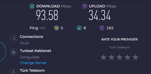 Çözüldü İnternet abonelik paketi 200Mbps olmasına rağmen 100Mbps veriyor