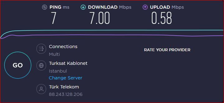 Türk Telekom kullanıyorum ve hızları çok düşük geldi. Sizin değerleriniz nasıl?