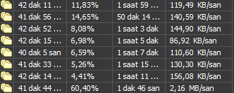 Mesela IDM ile indirme yapıyorum şu an dosyaların indirme hızları böyle. Kimi dosya yok denecek kadar az hızla iniyor bir tanesi çok iyi hızda iniyor. Bu evdeki tüm cihazlarda aynı. Genelde kardeşimin bilgisayarına bvağladığımda daha iyi hız alıyorum. (modeme en uzak olan bilgisayar o)