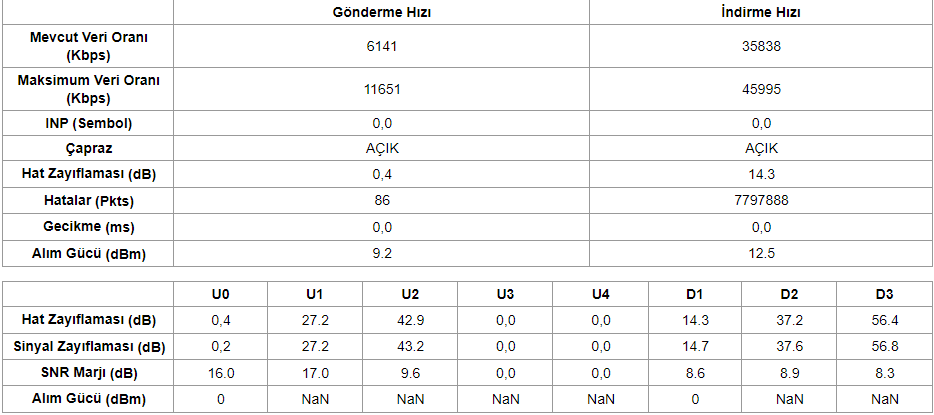 Modem hat değerlerim bunlar.