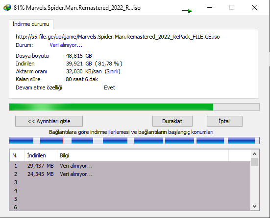Internet Download Manager da bir dosya indiriyorum ve o dosya nedense ilk başlarda 3 4 MB sonlarda ise 34KB 80KB hadi olsun 120 KB Max neden böyle oluyor ve.