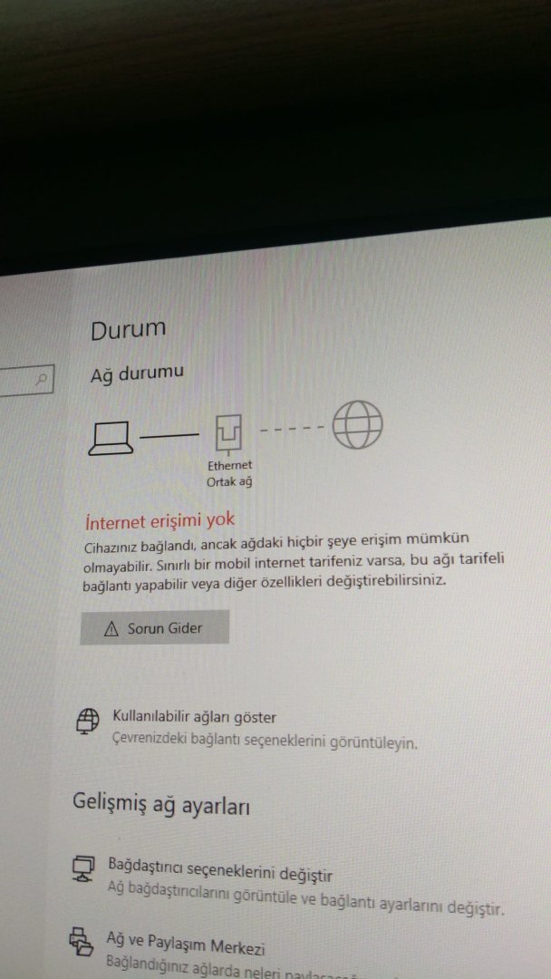 Merhaba arkadaşlar, arkadaşımın modemine telefondan vesaire bağlanılıyor fakat internet kablosu ile bağlantı gerçekleşmiyor. Fotoğraftaki gibi bir hata alıyoruz yardımcı olursanız çok sevinirim. Ağ sıfırlama, driver güncelleme vesaire denedik ancak olmuyor.