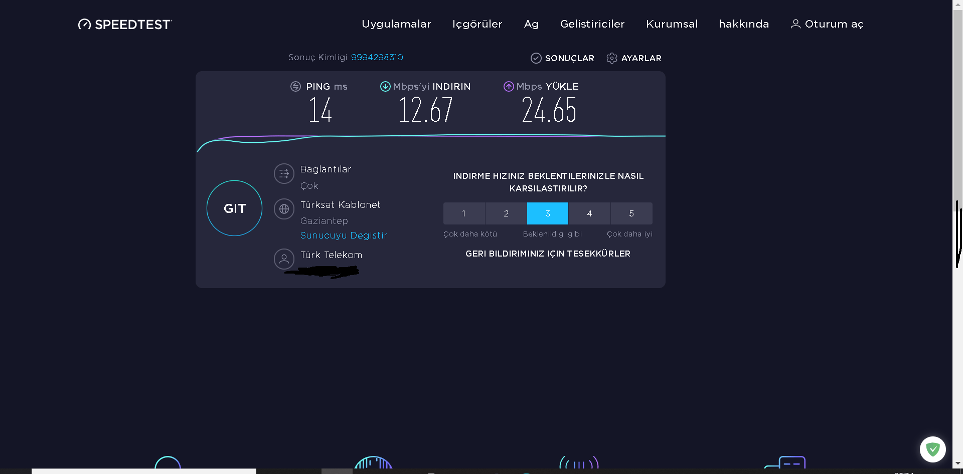 Merhabalar 3-4 gün önce mahallemizde 6 saatlik bir internet kesintisi oldu sonrasında bu gün Speedtest yapayım dedim, sonuç bu kesinlikle oynama yapmadım (VDSL 2.0 35 MB paket sınırsız )