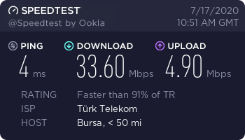 Ama Faster than 91% of TR.İnternetimden nefret ediyorum. Hemde bin kere nefret ediyorum. Hem upload hızını düşürüp. Üstüne pingimi yükselttiler.