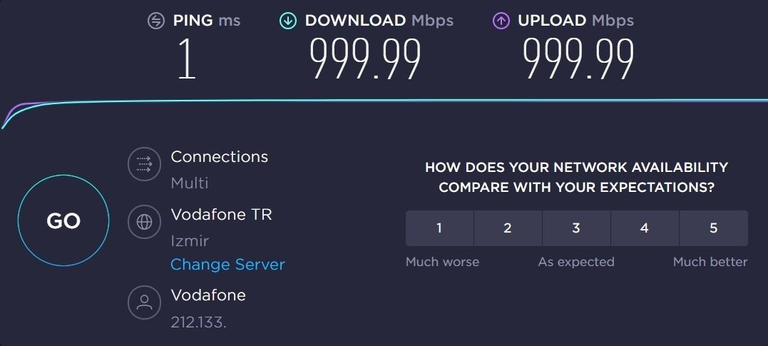 Türksat 100 güldüren paketi 100 Mbps 94 Mbps değerinin altına hiç inmedi bazen 105 110 gibi değerlere bile çıkıyor.