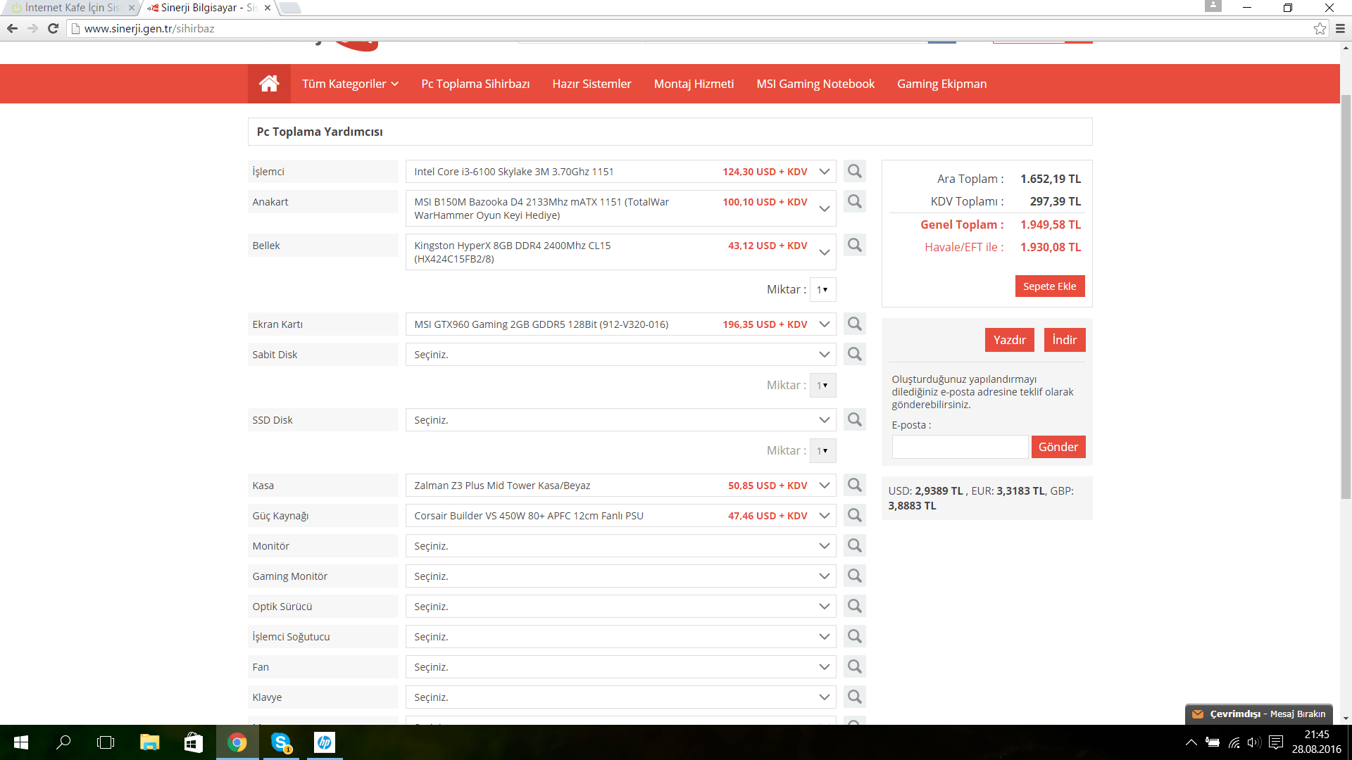 İnternet kafe için bir sistem toplanacağı için gelen insanların çoğunluğu oyun oynamaya gelecek render almak isteyen vs olacağını sanmıyorum. İ5 işlemciye para verileceğine i3 tabanlı bir sistem kurulması çok daha mantıklı olur diye düşünüyorum 470-960 vs gibi ekran kartları ile darboğaz yapmayacaktır. İşlemci oyun söz konusu olunca performansı çok etkilemiyor sonuçta. Ekran kartı olarak amd (400 serisi) ve nvdia (900 serisi) güç tüketimi olarak aynı sayılır eski rx200-hd serilerindeki gibi uçuk rakamlar artık yok. Amd 470 in internet kafe gibi biryer için fazla olacağını düşündüğümden gtx960 kulanılmasını daha mantkıklı buldum fiyat performansı yüksek bir kart. Anakart, güç kaynağı ve kasada daha düşük modeller seçilebilir ancak umarım olmaz ama eğer kapatma vs gibi bir durumunuz olur ise 2. el piyasasında daha çok rağbet gören ürünlerden yana tercih ettim. Toplamda 1930tl gibi bir rakama geldi anakartın yanında gelen WarHammer oyun keyi ister iseniz 100tl gibi bir rakama satılabiliyor bu durumda da birim başına maliyet 1800tl gibi bir rakama düşüyor. Bir internet kafe için hayli hayli yeterli ve güncel bir sistem olacağını düşünüyorum.