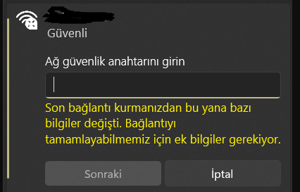 Arkadaşlar biz yeni bir modem aldık Türk Telekom fiber premium falan, modemi taktık ilk gün bir problem yoktu. 2. gün bilgisayarda, bilgisayar şifreyi yaklaşık her bir 5 dakikada bir unutuyor ve; son bağlanmanızdan sonra bir şeyler değişmiş falan diyor var mı çözümü bilen acaba?