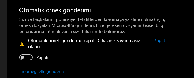 Eğer Windows defander açık ise şu ayarı kapatmanız internet kullanımınızı düşürtür.