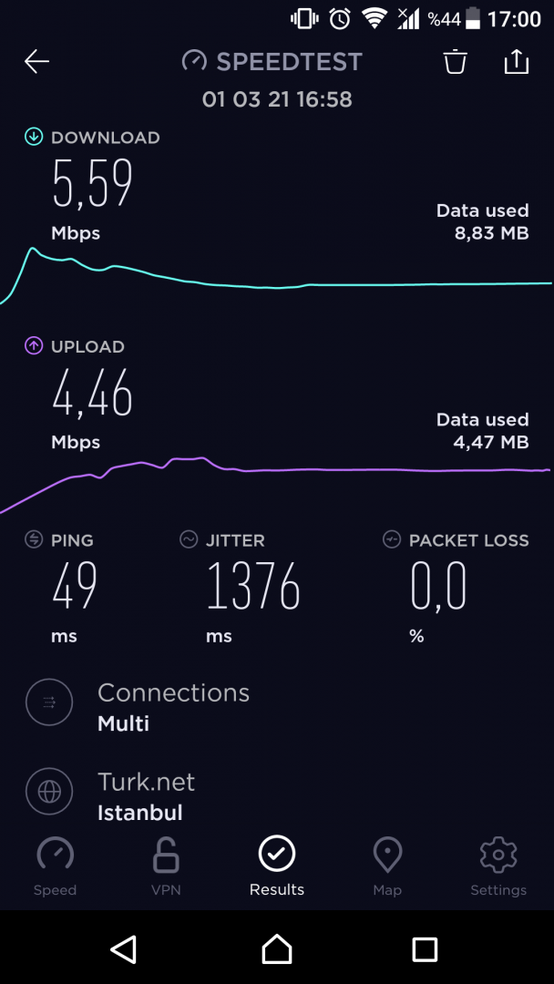 Merhaba. Bir süredir internetim, aşağıdaki fotoğraflarda da gösterdiğim gibi aşırı dalgalanıyor. YouTube videolarını bile stabil izleyemiyorum çoğu kez. Online oyunlarda, örneğin GTA Online, dalgalanmalar sırasında "network error" hatası vererek oyundan atıyor. Soracağım ise şu; dışarıdan eve gelen DSL kablosunun modemin yerini değiştirdiğimde yetersiz kalması sebebiyle arada splitter kullanarak 7 metrelik bir kablo daha ekledim. Yaşadığım bu dalgalanmanın sebebi bu olabilir mi?
