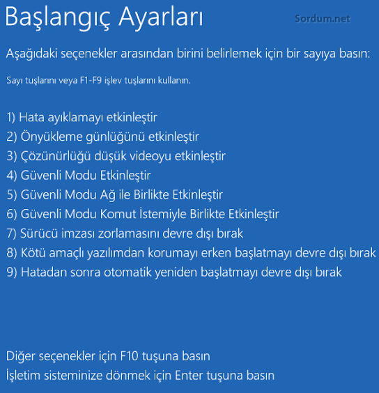 Bende shift'e basınca olmamıştı.Shifte basılı tutarak yeniden başlata basın. Dostumuzun gönderdiği menü ortaya çıkar. Oradan 4 e basmanız yeterlidir.