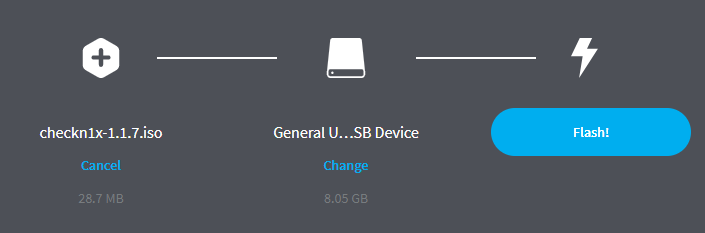 balenaEtcher'ı açıyoruz, ISO dosyasını ve USB'yi seçip "Flash!" tuşuna tıklıyoruz.