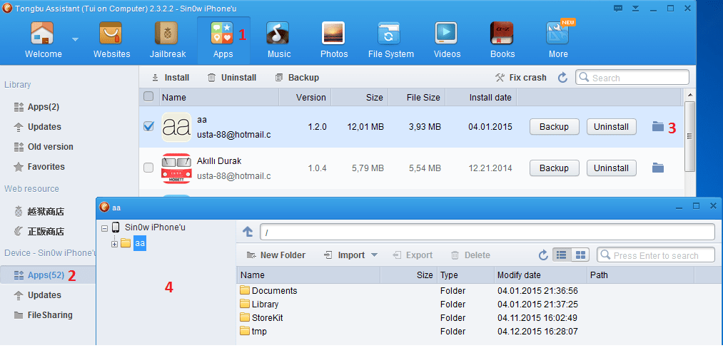 Kesinlikle JB düşünmüyorum. Evet telefon da 8.3 sürüm yüklü. Dediğiniz yolla programa ulaşıyorum fakat dosyalar gözükmüyor. 3. aşamaya bastığımda 4.aşamayı görüyorum ama, Name, Size, Tybe kısmı boş.