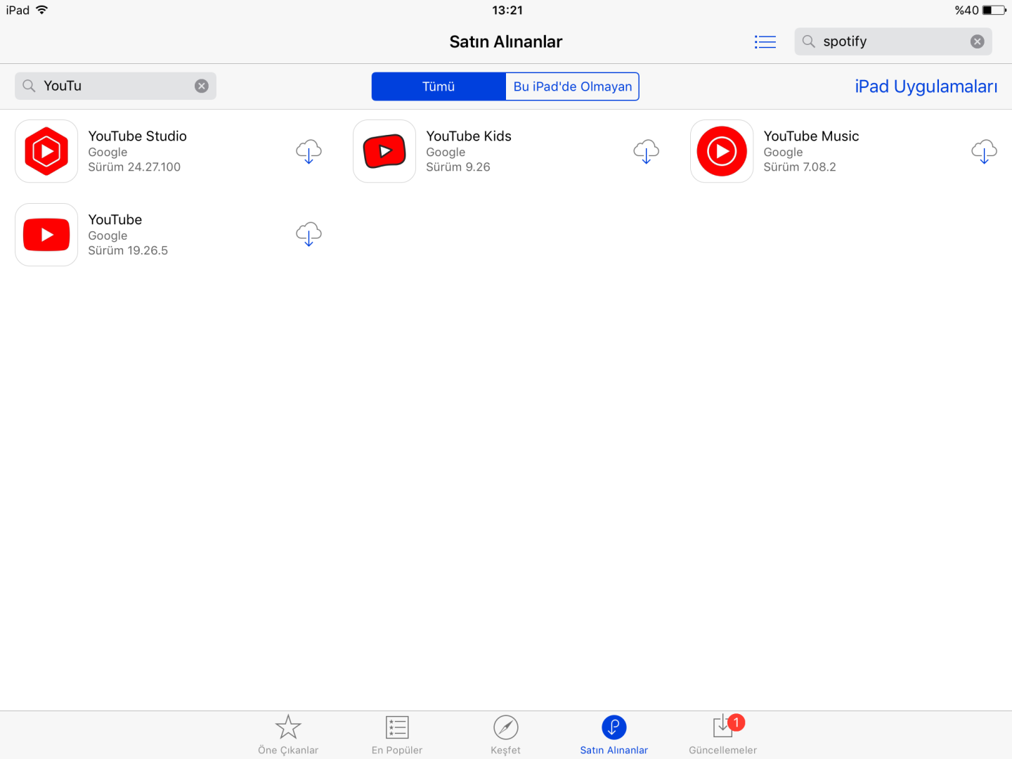 Adım 3: App Store'a girip Aşağıda Satın alınanlar diye bir seçenek olacaktır o tuşa basarak önümüze çıkan ekrandan YouTube Buluyoruz istersen Sol Üstte bulunan Satın alınanlarda ara butonunu kullanabilirsiniz.